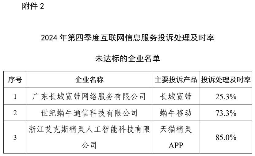 2.2024年第四季度互联网信息服务投诉处理及时率未达标的企业名单