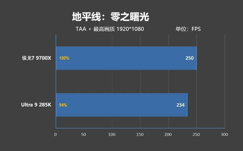 可即便如此,Ultra 9 285K的游戏性能依旧不如锐龙7 9700X,差距是3%。
