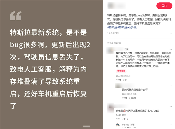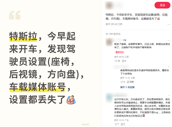 昨日,不少特斯拉车主在小红书等社交平台反映称,平日自己设置好东西都变了,需要重新手动调整,有车主形容为“我的车突然不是我的车了!”
